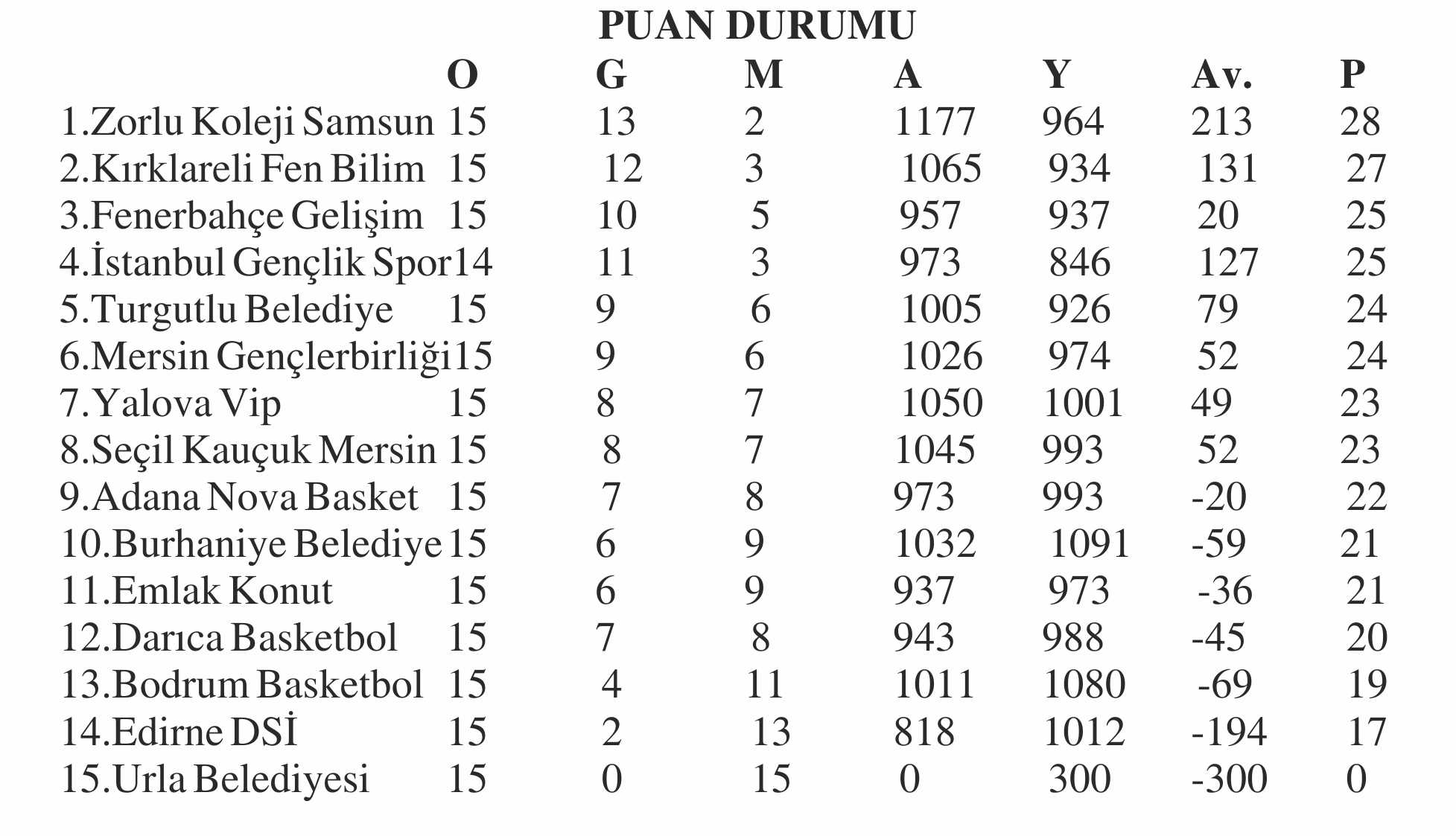 TKBL’DE 16. HAFTA TOPLU SONUÇLAR