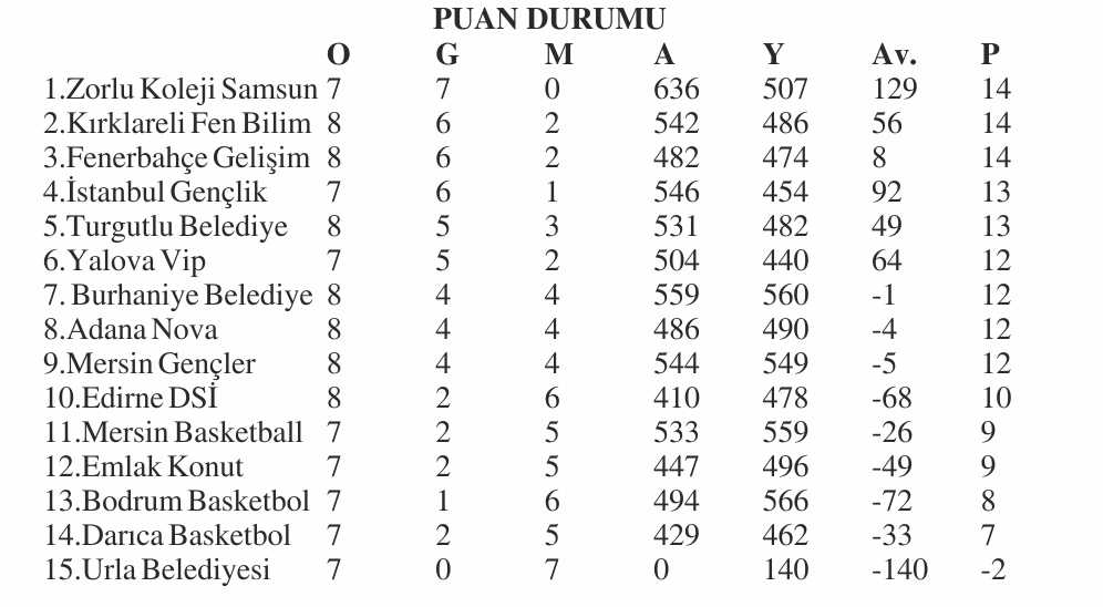 Zorlu Koleji Samsun Basketbol – Kırklareli Belediyesi Kırklareli Fen Bilimleri