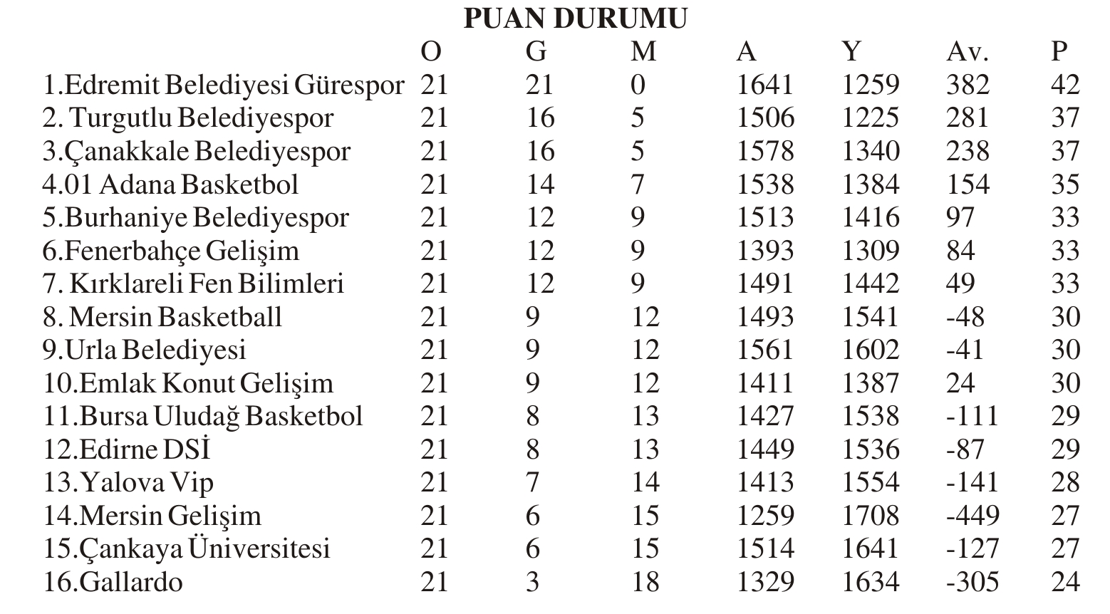 TKBL 21. HAFTA TOPLU SONUÇLAR