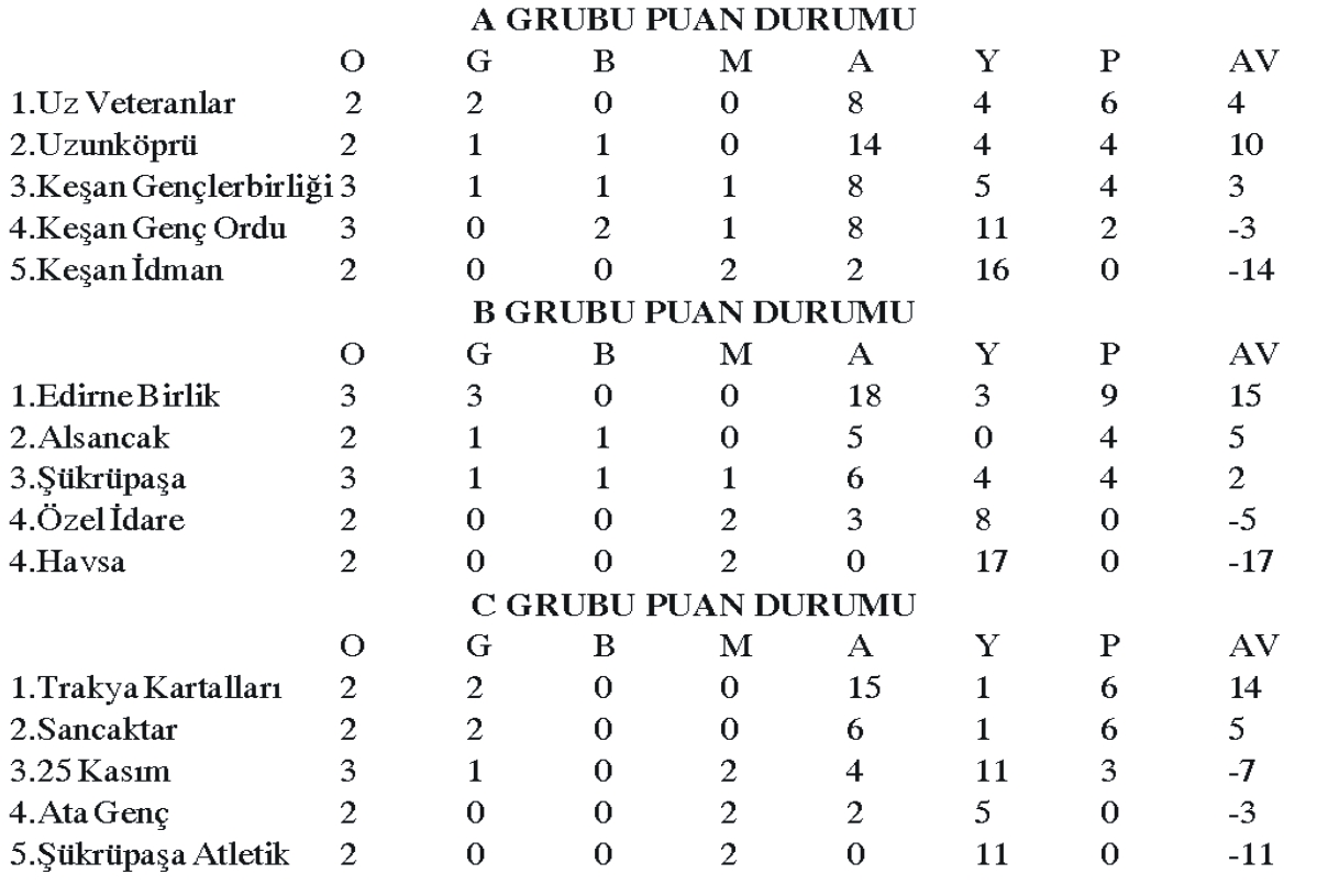 Şükrüpaşa 0-0 Alsancak Özel İdare 2-3 Edirne Birlik