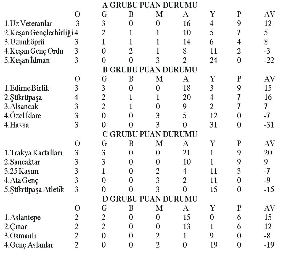 Uzunköprü 0-2 Keşan Gençlerbirliği Keşan İdman 0-8 Uz Veteranlar