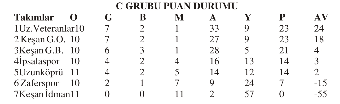 C GRUBUNDA GEÇEN AHAFTA ALINAN SONUÇLAR