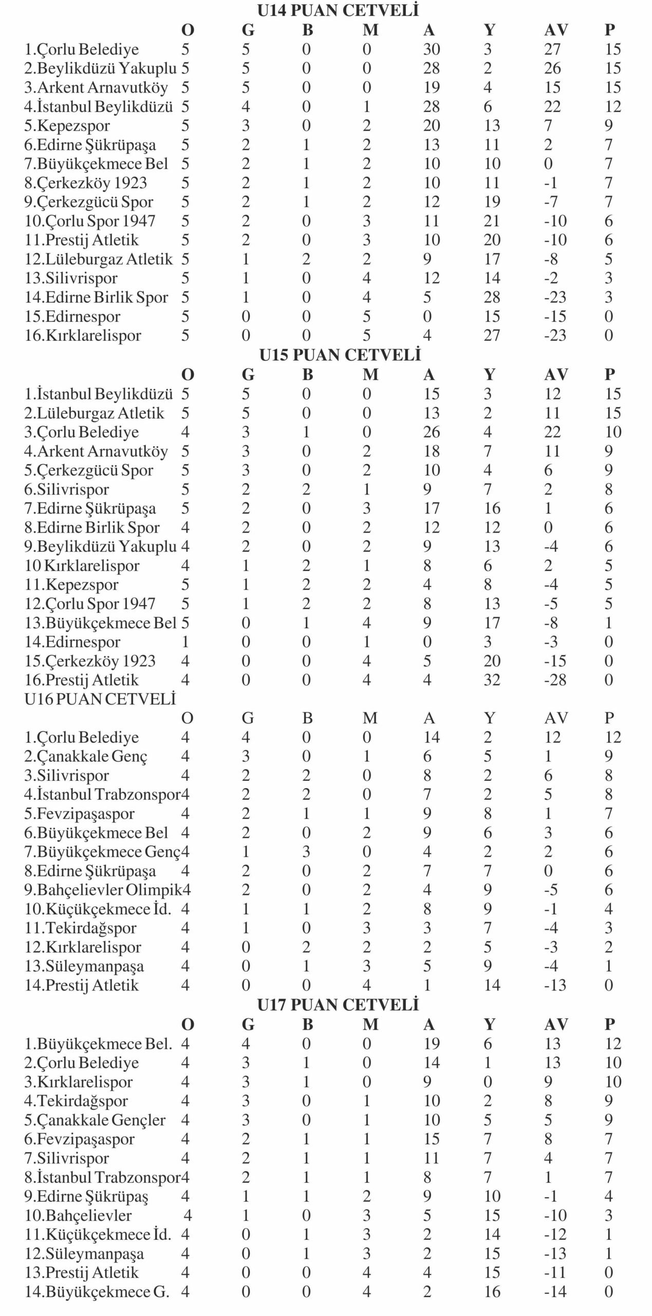 Edirne Birlik Spor U15 geçtiğimiz hafta evinde Prestij Atletik Spor Kulübü’ne 6-2 yenerken, Edirne Şükrüpaşa Spor ise Edirnespor ligde yer almadığı için haftayı bay geçmişti.