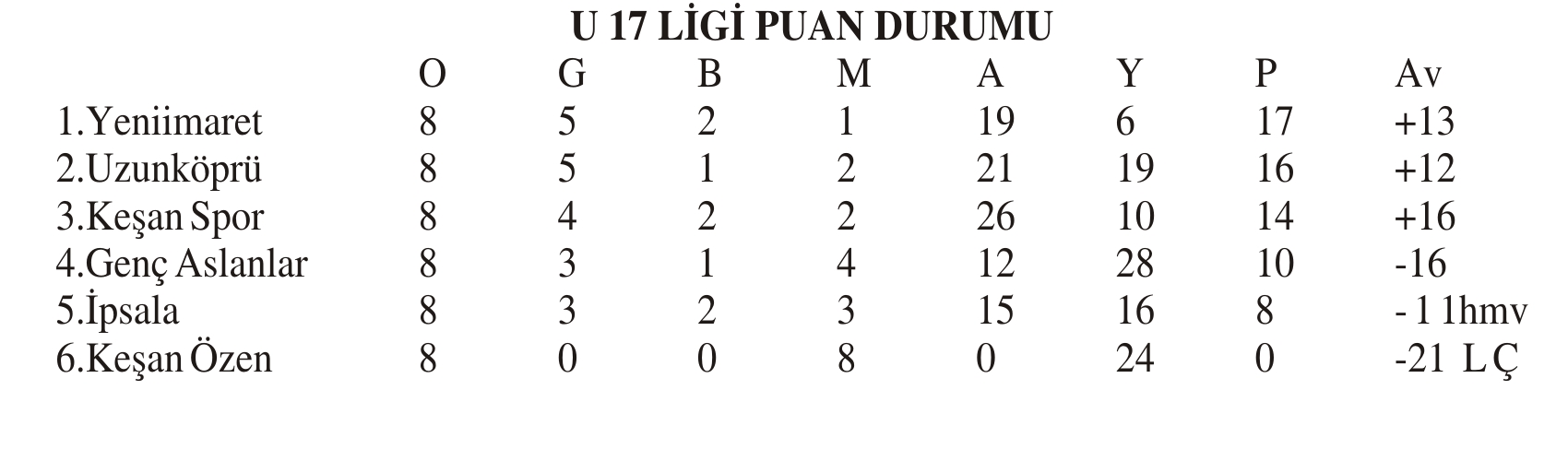 U17 LİGİ’NDE 8. HAFTA SONUÇLARI