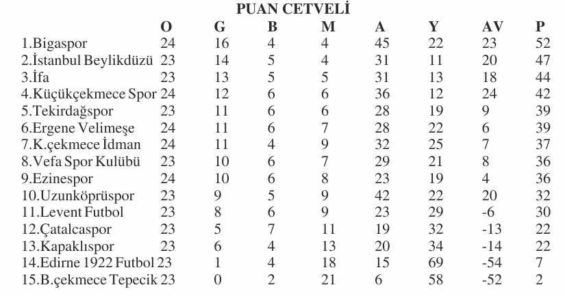 Bölgesel Amatör Lig (BAL) 25. haftasında Uzunköprüspor, deplasmanda grup lideri Bigaspor’a 2-1 mağlup olurken, Edirne 1922 Futbol Spor Kulübü ise Ezinespor ile 2-2 berabere kalarak 1 puan sevinci yaşadı.