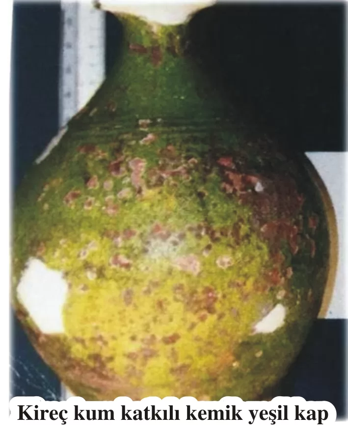 Mavi kase 2010/12, toprak mangal 2011/2, mavi beyaz fincan 2013/20, ibrik 2013/21, yeşil kum katkılı kemik kap 2013/22, bronz ağırlık 2013/35, yeşil sırlı kap 2010/11, minyatür kemik kap 2013/19, kemik kapaklar 2013/7, 8, 18