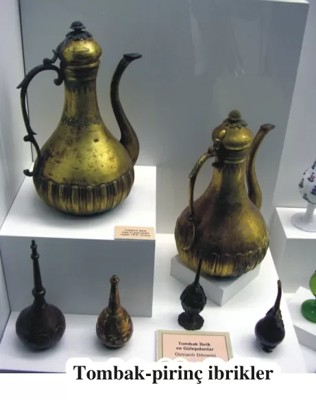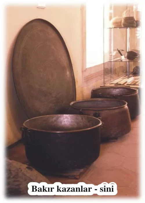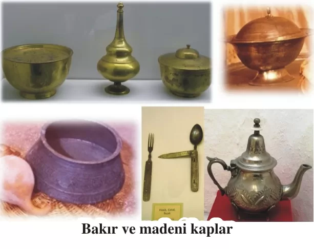 Pişirme kapları olarak kazan, tencere ve tavalar özellikle bakırdan ve düzenli kalaylanıyor, pirinçten dökülmüş havanlar, bakır ve çinko bileşimi sarı tombaklar kültürün somut değerleri.