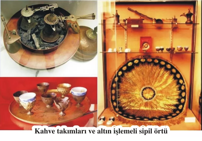 Saray mutfağının kap kacakları, sunum araç gereçleri ile hazırlanan şenlik ve konuk sofralarında da bu ihtişam görülüyor. Özel sırlı çini tabak –kaseler, gümüş sedef kaşıklar, altın varaklı camlar gibi…. Ve sedef kakmalı sofra altlıkları, altın işlemeli örtüler, havlulara kadar. Pek tabii ki günlük kullanılan kap kacaklar da özenle üretilmiş nadide parçalar. Hepsi konusunun ehli sanat ve zanaat erbabı tarafından üretiliyor.