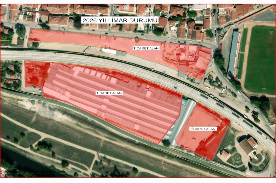 Yeni planla pazar yerinin ortadan kaldırıldığını tüm alanın büyütülmüş bir halde ticaret alanına çevrilerek betonlaşmaya açıldığını anlıyoruz.