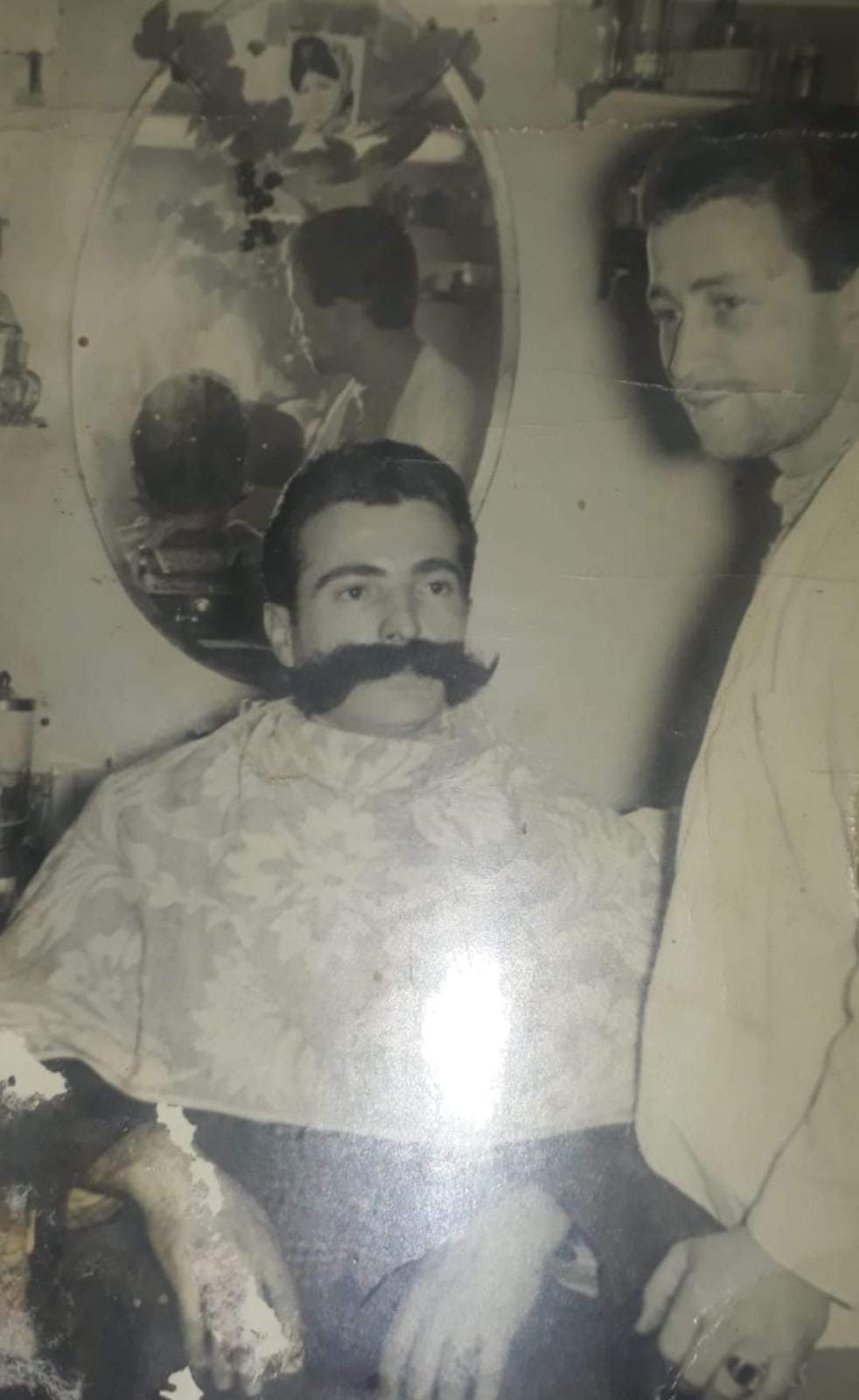 60 lı yıllar. Berber Şükrü Agora Meyhanecisi Nusret Kasrat’ı tıraş ediyor.